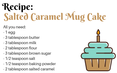 - Add a tablespoon of salted caramel to the top of the mixture, this will sink as it cooks and leaves you with a gooey caramel centre.
